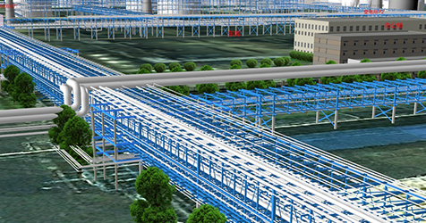化工園總圖規(guī)劃系統將以原始圖紙資料為基礎做成的管廊、管線數據,以二維展現的方式加載到系統中,它不僅支持海量的矢量、影像和業(yè)務屬性等數據的加載和顯示